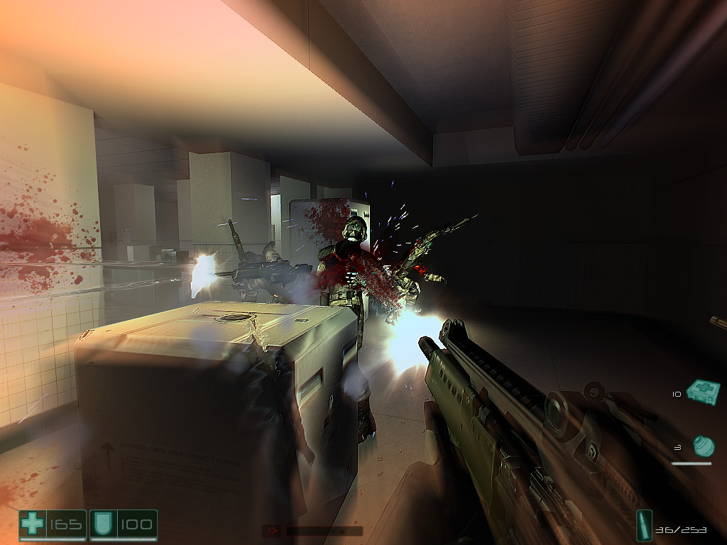 F.E.A.R.'s horror theme was praised by critics. Game Informer claimed that "...the frequent spooky head trips that Monolith has so skillfully woven together make an experience that demands to be played."[12] IGN opined that "the environment has been so well-crafted to keep you edgy and watchful... [that] playing the game for a few hours straight can get a little draining."[13]GameSpot reacted similarly, calling F.E.A.R.'s horror "exceedingly effective," and agreeing that it "can leave you a bit emotionally exhausted after a while."[14]