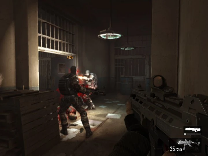 The Point Man is brought to the prison after fleeing Fairport, sometime after the events of F.E.A.R. First Encounter Assault Recon. Though its not known what happened a year later and how he is captured by ATC. Armacham guards capture the Point Man and beat him inside the prison, trying to force him to give them information on Jin's location who is calling for help on his com link. The "ghost" of the Point Man's brother, Paxton Fettel, kills the guards and helps his brother to escape, claiming to be in a hurry to find their mother again. From the first, Alma watches over her sons, and appears to them continuously as they move through the prison.