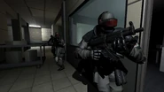 In F.E.A.R. Extraction Point, Replica Fatigues are faced for the first time in Interval 02 - Flight - Ambush, patrolling the buildings the player cuts through alongside other Replica forces, like Replica Tactical Soldiers, Replica Elite Soldiers and Heavy Armors, they make up the bulk of the enemies fought in Interval 02.