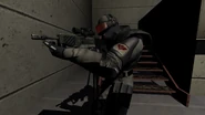 Replica Fatigues Soldiers are Replicas that show up towards the end of the level in the South River Wastewater Treatment Plant, and are also fought mainly during the first half of the Armacham Technology Corporation Headquarters level (although they make occasional appearances in the later half as well). The red glow from their night vision goggles makes it easy to spot them from a distance or in the dark.