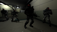 Replica Fatigues Soldiers are a Replica unit that wears a solid grey uniform and a grey balaclava with red night vision goggles.